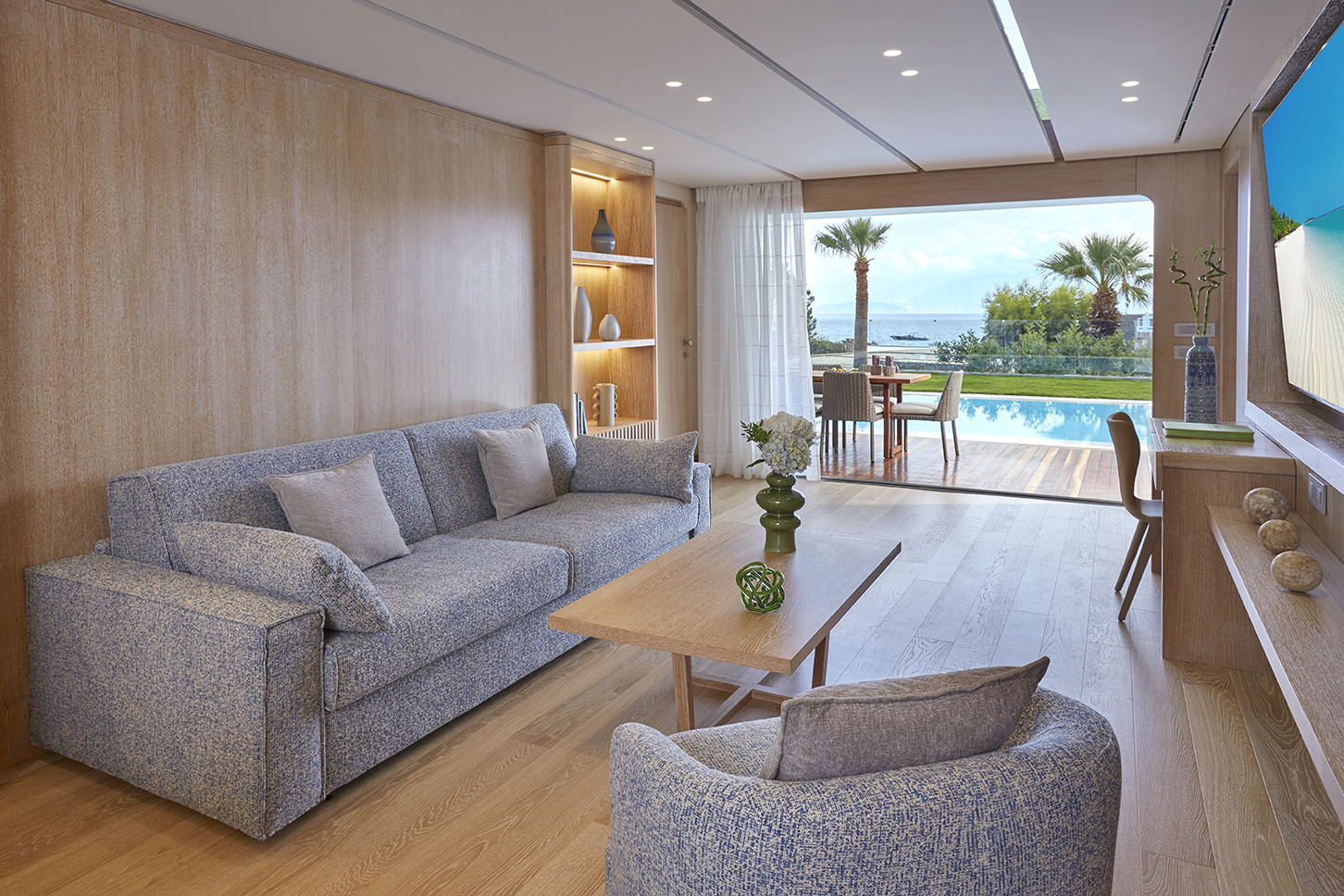 Designed in soothing earthy tones and furnished with premium fabrics and high-end materials, these elegant bungalows exude an atmosphere of effortless sophistication. Most of these new units feature a separate bedroom and living room configuration, a fully equipped kitchen, and expansive terraces that seamlessly connect the indoors with Crete’s natural beauty. Many of the bungalows come with sharing or private pools, providing an added touch of exclusivity ideal for couples seeking privacy, as well as families or multi-generation groups needing more space and independence. Two-bedroom options are also available, ensuring flexibility for a variety of guest preferences.